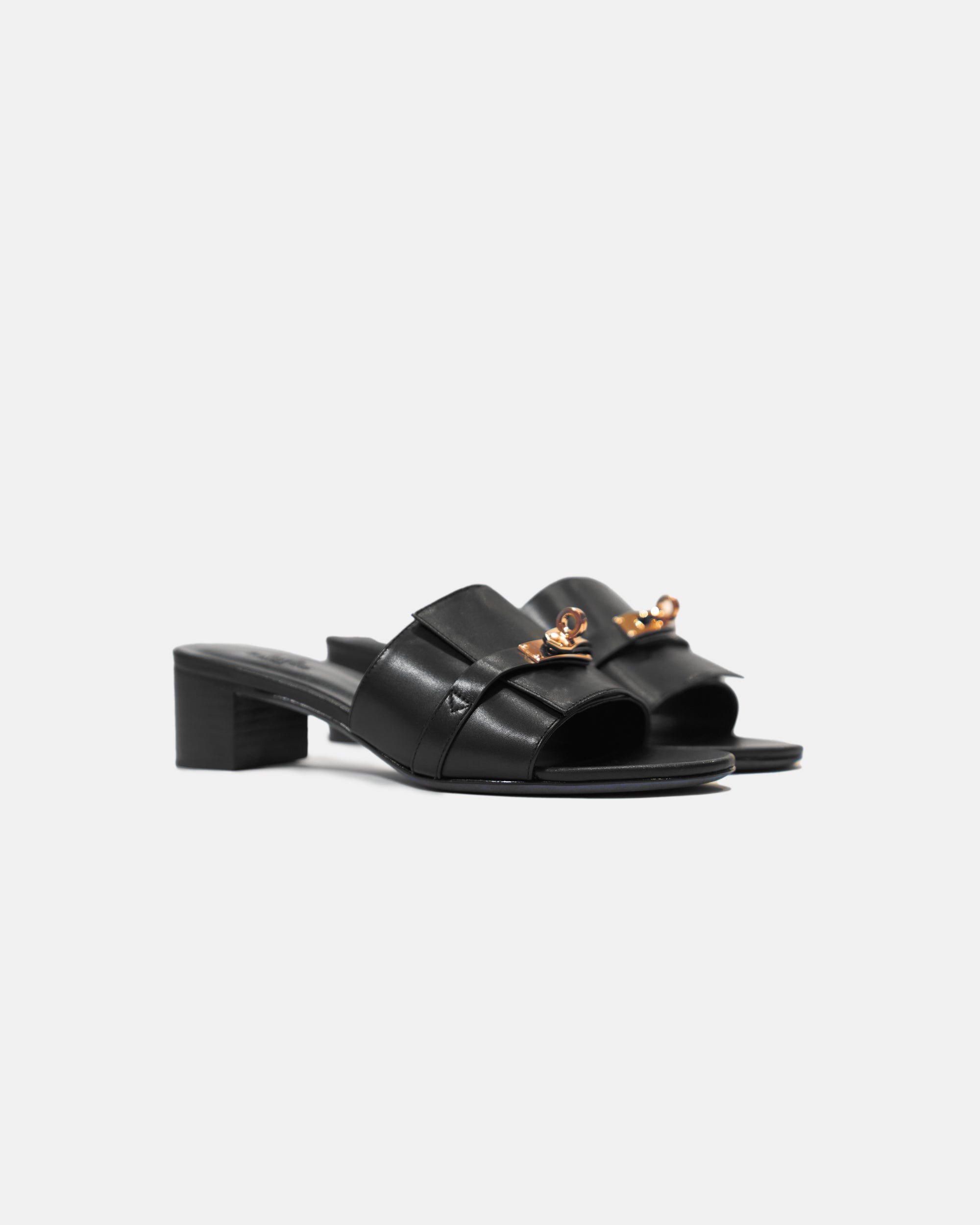 Hermes Chypre Black Calfskin Sandal