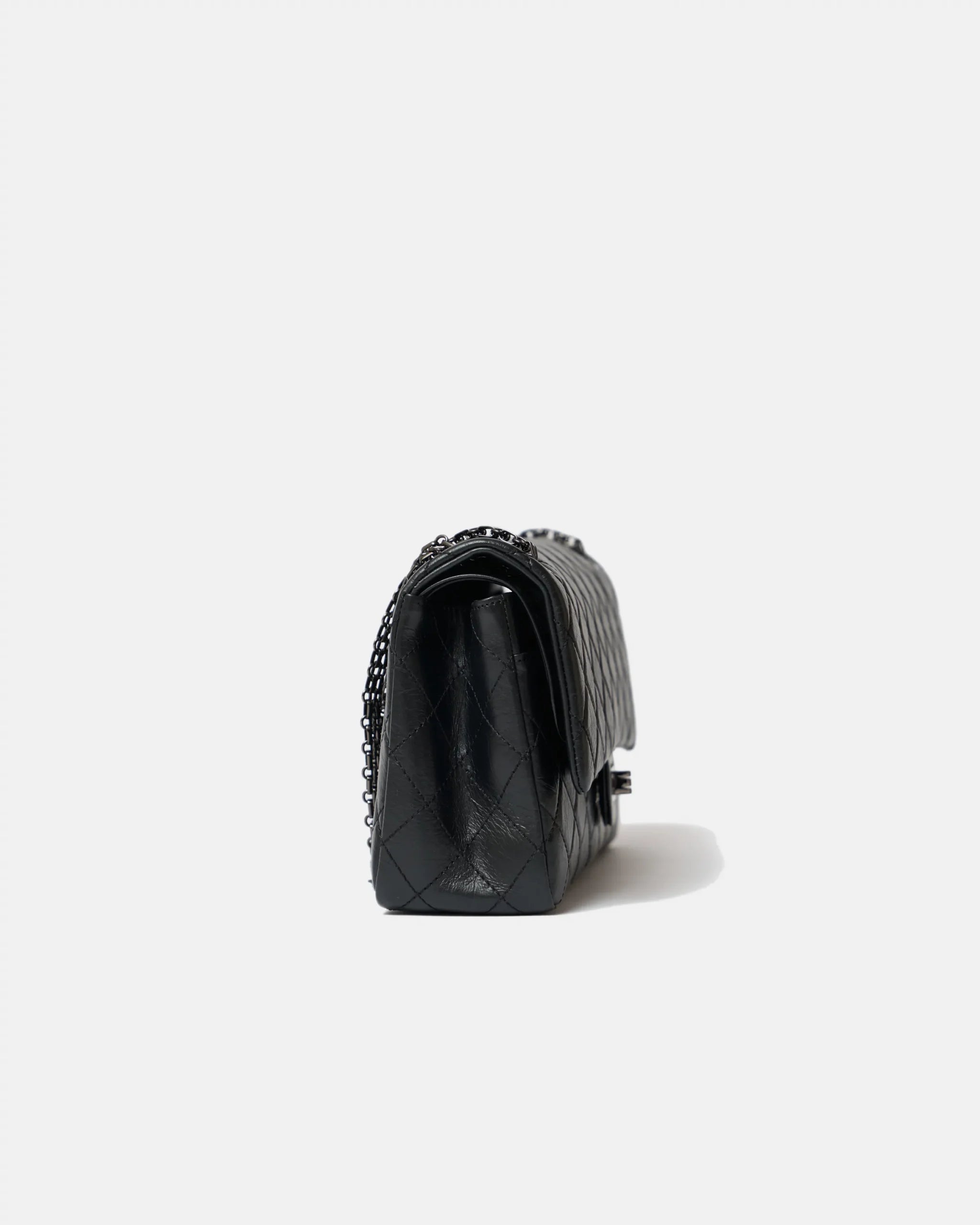 Chanel 2.55 Medium Black Aged Calfskin Black and Black Hardware