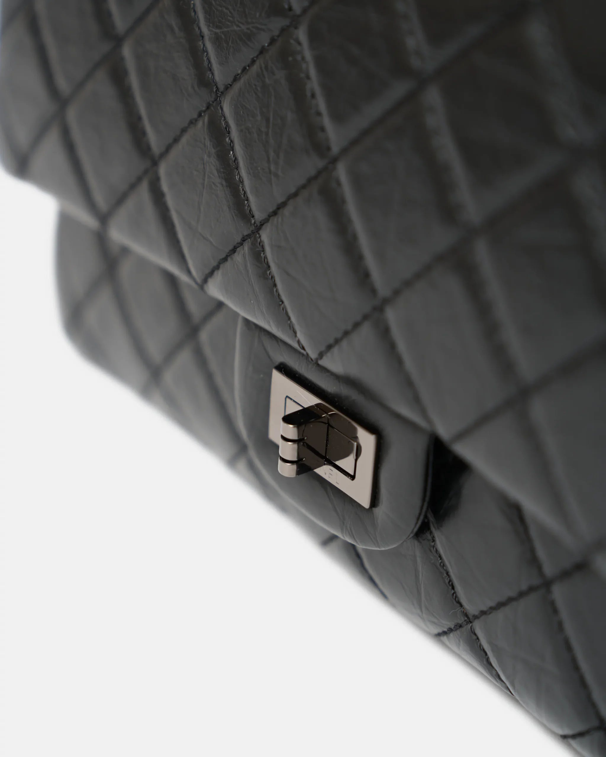 Chanel 2.55 Medium Black Aged Calfskin Black and Silver-Tone Metal